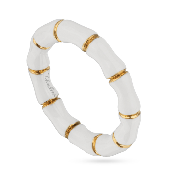 Изготовлено из ювелирного сплава на основе латуни с гальваническим покрытием золотом. Изделие украшает белая эмаль. Ширина 3мм.