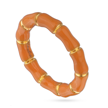 Изготовлено из ювелирного сплава на основе латуни с гальваническим покрытием золотом. Изделие украшает оранжевая эмаль. Ширина 3мм.