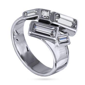 Изготовлено из ювелирного сплава на основе латуни с гальваническим покрытием родием. Изделие украшают кристаллы SW белого цвета. Ширина кольца 2см.