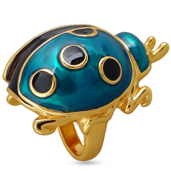Изготовлено из ювелирного сплава на основе латуни с гальваническим покрытием золотом. Изделие покрыто эмалью изумрудного и черного цвета. Размер украшения 3.5х2.5см.