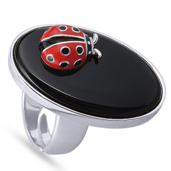 Изготовлено из ювелирного сплава на основе латуни с гальваническим покрытием родием. Изделие покрыто эмалью красного и черного цвета. Размер украшения 4х2.5см. Безразмерное.