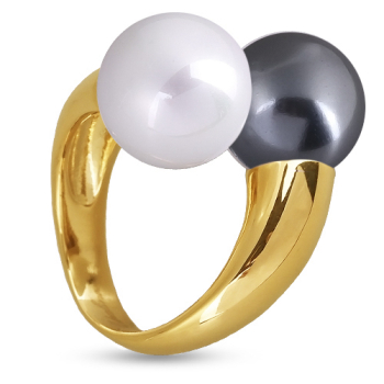 Кольцо Дуэт (Майорка 14мм белая, темно-серая; покрытие золото), Есть комплект