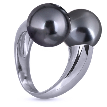 Кольцо Дуэт (Майорка 14мм темно-серая; покрытие родий), Есть комплект