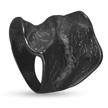 Изготовлено из ювелирного сплава на основе латуни с гальваническим покрытием черным родием. Ширина кольца 2.8см.
