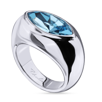 Изготовлено из ювелирного сплава на основе латуни с гальваническим покрытием родием. Изделие украшают кристаллы SW цвета аквамарин. Ширина 1.4см.