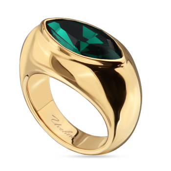 Изготовлено из ювелирного сплава на основе латуни с гальваническим покрытием золотом. Изделие украшают кристаллы SW зеленого цвета. Ширина 1.4см.