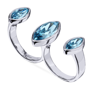 Изготовлено из ювелирного сплава на основе латуни с гальваническим покрытием родием. Изделие украшают кристаллы SW цвета аквамарин.