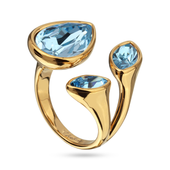 Изготовлено из ювелирного сплава на основе латуни с гальваническим покрытием золотом. Изделие украшают кристаллы SW цвета аквамарин.