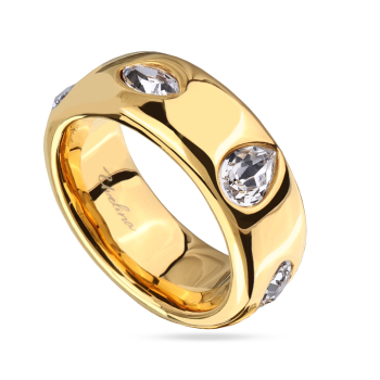 Изготовлено из ювелирного сплава на основе латуни с гальваническим покрытием золотом. Изделие украшают кристаллы SW белого цвета.