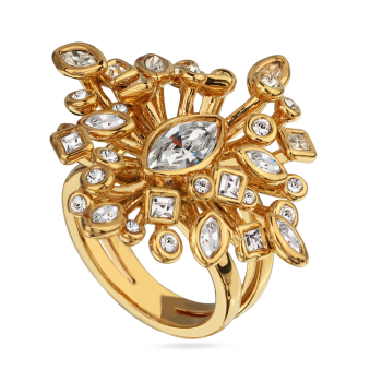 Изготовлено из ювелирного сплава на основе латуни с гальваническим покрытием золотом. Изделие украшают кристаллы SW белого цвета.