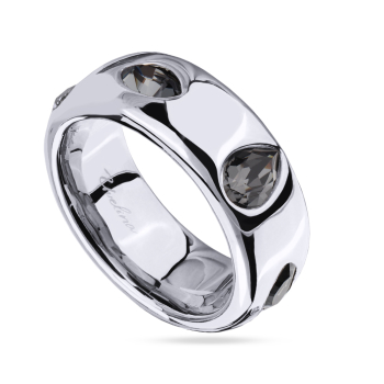 Изготовлено из ювелирного сплава на основе латуни с гальваническим покрытием родием. Изделие украшают кристаллы SW темно-серого цвета. Ширина 0.8см.