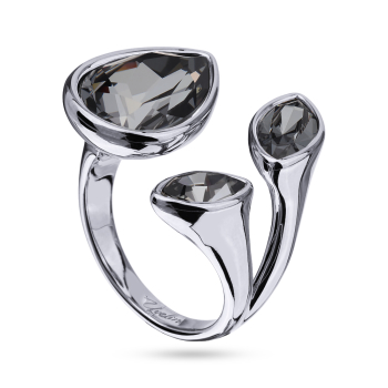 Кольцо Эйва (кристаллы SW темно-серые; покрытие родий), Есть комплект