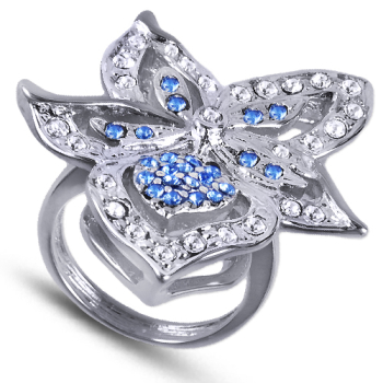 Кольцо Гвайтесара (кристаллы SW синие, белые; покрытие серебро)