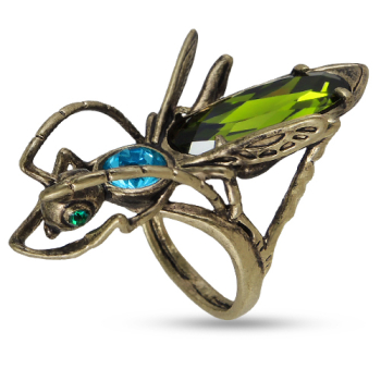 Изготовлено из ювелирного сплава на основе латуни с гальваническим покрытием бронзой. Изделие украшают кристаллы SW зеленого и голубого цвета. Размер украшения 4х1.5см.