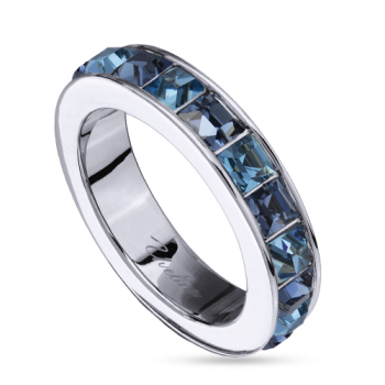 Кольцо Квадро (кристаллы SW джинс, аквамарин; покрытие родий), Есть комплект
