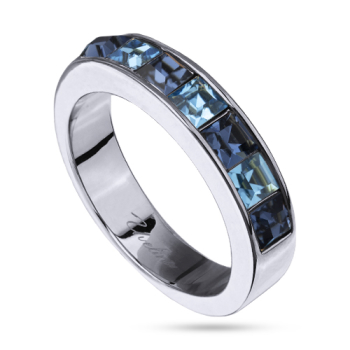 Кольцо Квадро (кристаллы SW джинс, аквамарин; покрытие родий), Есть комплект