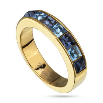 Кольцо Квадро (кристаллы SW джинс, аквамарин; покрытие золото), Есть комплект