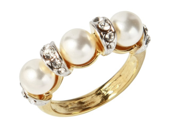 Кольцо Лойко (жемчуг белый, кристаллы SW; покрытие золото)