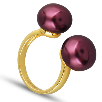 Изготовлено из ювелирного сплава на основе латуни с гальваническим покрытием золотом. Изделие украшает майорский жемчуг диаметром 12мм цвета бургунди. Безразмерное.