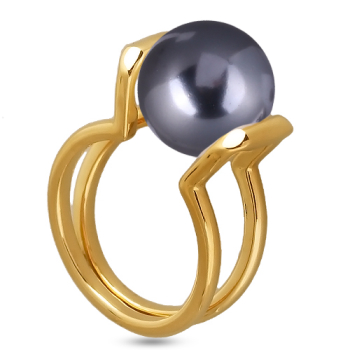 Изготовлено из ювелирного сплава на основе латуни с гальваническим покрытием золотом. Изделие украшает майорский круглый жемчуг темно-серого цвета диаметром 12мм.