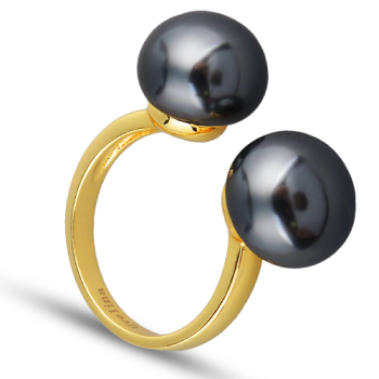 Изготовлено из ювелирного сплава на основе латуни с гальваническим покрытием золотом. Изделие украшает майорский жемчуг темно-серого цвета диаметром 12мм. Безразмерное.