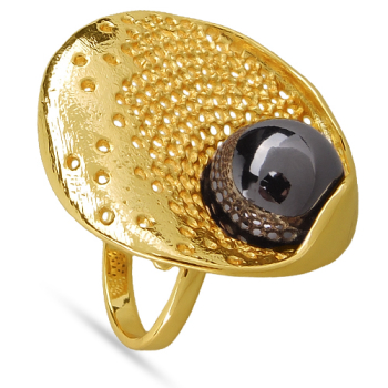 Изготовлено из ювелирного сплава на основе латуни с гальваническим покрытием золотом. Изделие украшает майорский круглый жемчуг черного металлик цвета диаметром 14мм. Безразмерное.