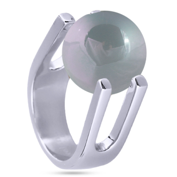 Изготовлено из ювелирного сплава на основе латуни с гальваническим покрытием родием. Изделие украшает майорский круглый жемчуг голубого цвета диаметром 14мм.