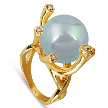 Изготовлено из ювелирного сплава на основе латуни с гальваническим покрытием золотом. Изделие украшают майорский круглый жемчуг голубого цвета диаметром 14мм и кубики циркония.