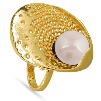 Изготовлено из ювелирного сплава на основе латуни с гальваническим покрытием золотом. Изделие украшает майорский круглый жемчуг нежно-персикового цвета диаметром 14мм. Безразмерное.