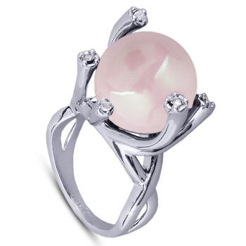Изготовлено из ювелирного сплава на основе латуни с гальваническим покрытием родием. Изделие украшают майорский круглый жемчуг розового цвета диаметром 14мм и кубики циркония.