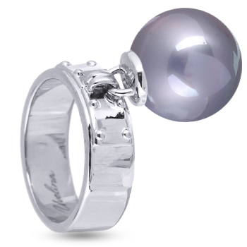 Изготовлено из ювелирного сплава на основе латуни с гальваническим покрытием родием. Изделие украшает майорский круглый жемчуг серо-голубого цвета диаметром 14мм.