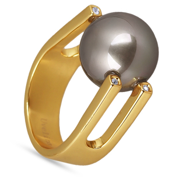Изготовлено из ювелирного сплава на основе латуни с гальваническим покрытием золотом. Изделие украшают майорский круглый жемчуг серо-коричневого цвета диаметром 14мм и кубики циркония.