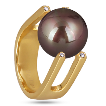 Изготовлено из ювелирного сплава на основе латуни с гальваническим покрытием золотом. Изделие украшают майорский круглый жемчуг шоколадного цвета диаметром 14мм и кубики циркония.