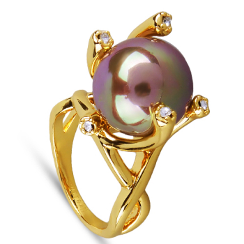 Изготовлено из ювелирного сплава на основе латуни с гальваническим покрытием золотом. Изделие украшают майорский круглый жемчуг шоколадного цвета диаметром 14мм и кубики циркония.
