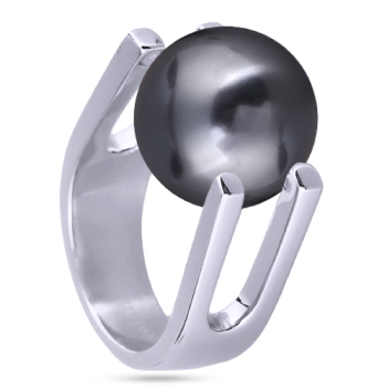 Изготовлено из ювелирного сплава на основе латуни с гальваническим покрытием родием. Изделие украшает майорский круглый жемчуг темно-серого цвета диаметром 14мм.