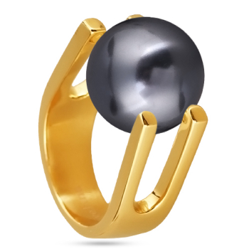 Изготовлено из ювелирного сплава на основе латуни с гальваническим покрытием золотом. Изделие украшает майорский круглый жемчуг темно-серого цвета диаметром 14мм.