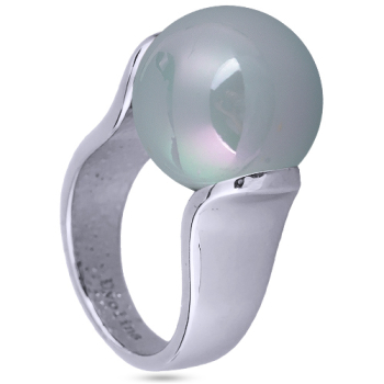 Изготовлено из ювелирного сплава на основе латуни с гальваническим покрытием родием. Изделие украшает майорский круглый жемчуг голубого цвета диаметром 16мм.