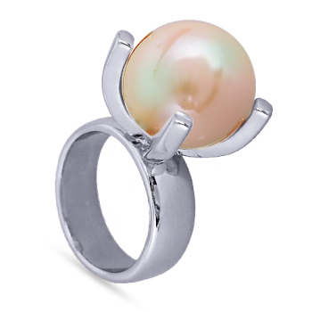 Изготовлено из ювелирного сплава на основе латуни с гальваническим покрытием родием. Изделие украшает майорский круглый жемчуг нежно-персикового цвета диаметром 16мм.