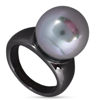 Изготовлено из ювелирного сплава на основе латуни с гальваническим покрытием черным родием. Изделие украшает майорский жемчуг серо-голубого цвета, диаметром 16мм.