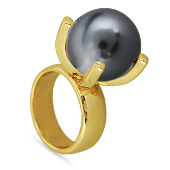Изготовлено из ювелирного сплава на основе латуни с гальваническим покрытием золотом. Изделие украшает майорский круглый жемчуг темно-серого цвета диаметром 16мм.