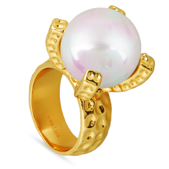 Изготовлено из ювелирного сплава на основе латуни с гальваническим покрытием золотом. Изделие украшает майорский круглый жемчуг белого цвета диаметром 18мм.