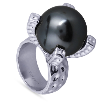Изготовлено из ювелирного сплава на основе латуни с гальваническим покрытием родием. Изделие украшает майорский круглый жемчуг темно-серого цвета диаметром 18мм.
