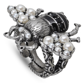 Изготовлено из ювелирного сплава на основе латуни с гальваническим покрытием античным серебром. Изделие украшают жемчуг Майорка белого цвета, эмаль и кристаллы черного цвета. Размер украшения 4х3см.