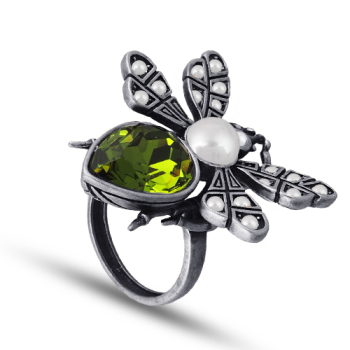 Изготовлено из ювелирного сплава на основе латуни с гальваническим покрытием античным серебром. Изделие украшают кристаллы SW зеленого цвета и белый майорский жемчуг диаметром 6мм. Размер украшения 3х3см.