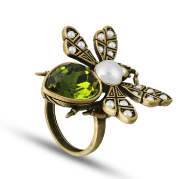 Изготовлено из ювелирного сплава на основе латуни с гальваническим покрытием бронзой. Изделие украшают кристаллы SW зеленого цвета и белый майорский жемчуг диаметром 6мм. Размер украшения 3х3см.
