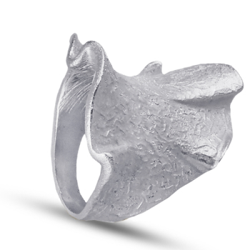 Изготовлено из ювелирного сплава на основе латуни с гальваническим покрытием матовым родием. Ширина кольца 3см.