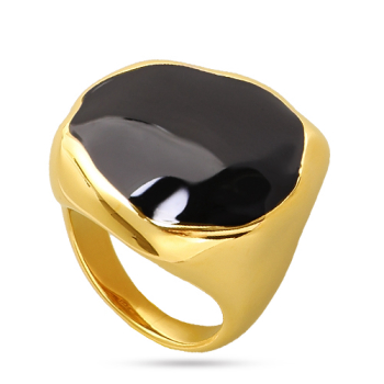 Изготовлено из ювелирного сплава на основе латуни с гальваническим покрытием золотом. Изделие украшает эмаль черного цвета. Ширина кольца 2, 5см.