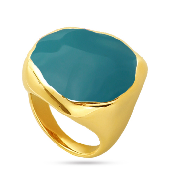 Изготовлено из ювелирного сплава на основе латуни с гальваническим покрытием золотом. Изделие украшает эмаль изумрудного цвета. Ширина кольца 2, 5см.