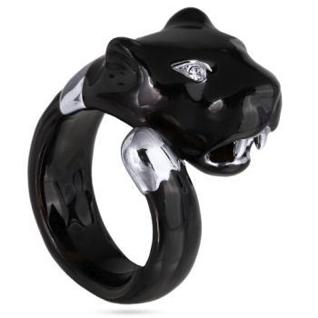 Кольцо Пантера (эмаль черная, кристаллы SW белые; покрытие родий), Есть комплект