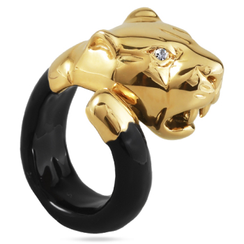 Кольцо Пантера (эмаль черная, кристаллы SW белые; покрытие золото), Есть комплект